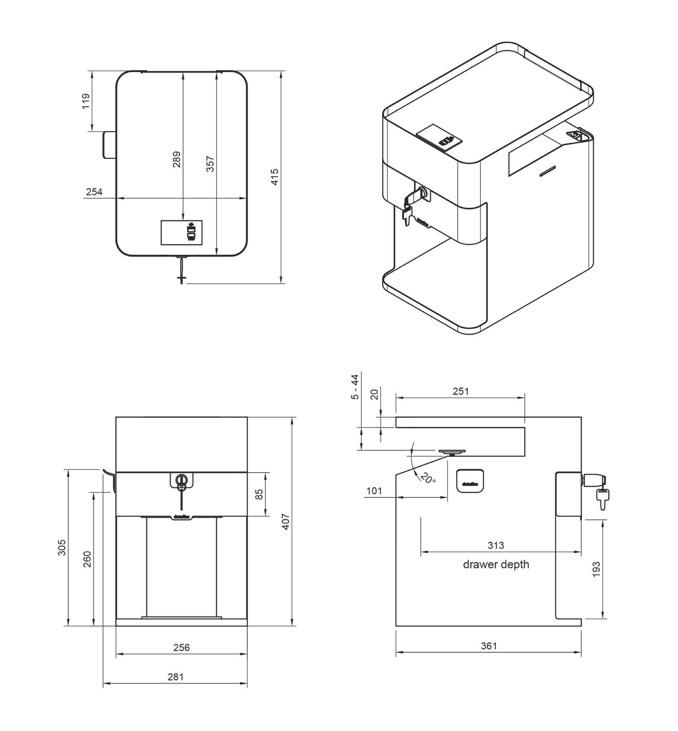 - Interior soft-close drawer dimensions (w x d x h): 213 x 310 x 65 mm (12.32" x 10.08" x 3.35")