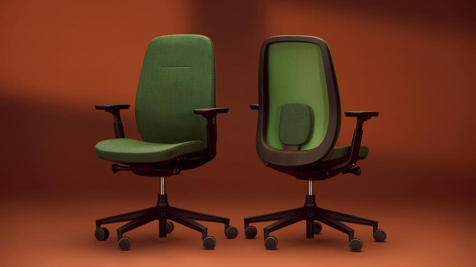 - The backrest parts – the rear upholstery frame and the front frame – are made of polypropylene (PP) containing 80% recycled material, while the main frame is made of polyamide (PA) with 65% recycled material content,
