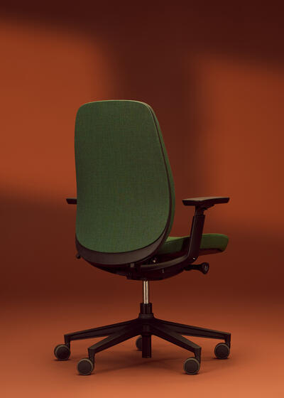 - The backrest parts – the rear upholstery frame and the front frame – are made of polypropylene (PP) containing 80% recycled material, while the main frame is made of polyamide (PA) with 65% recycled material content,