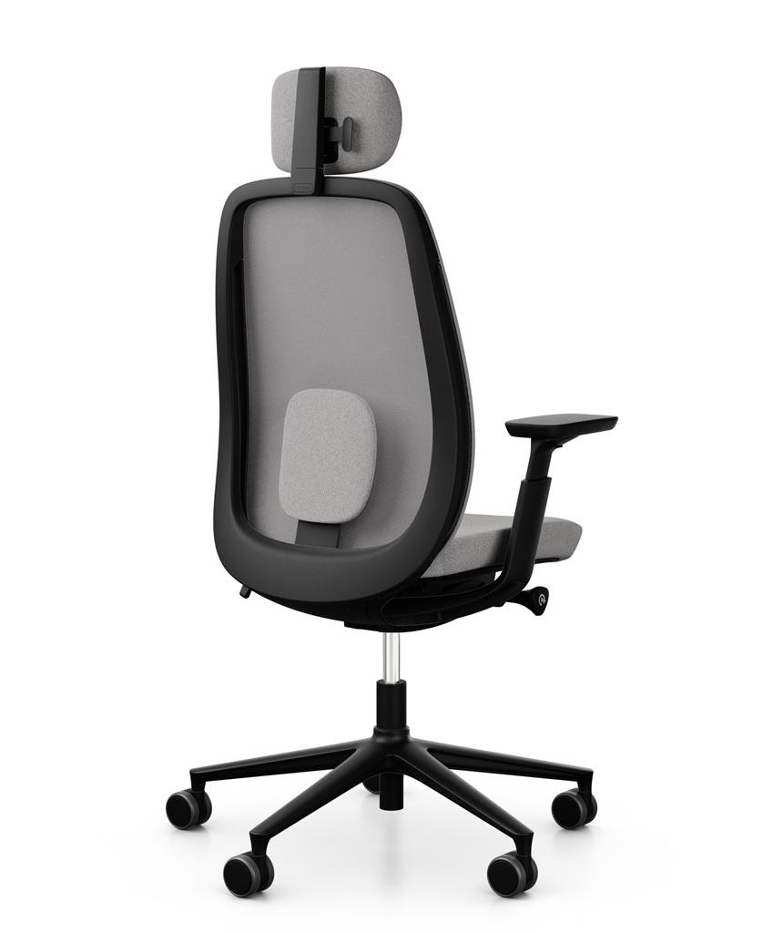 The new Profim mesh back task chair with Headrest, Pace by FLOKK, elevates comfort and ergonomics. Engineered for modern workspaces, Pace combines personalized adjustability, advanced lumbar support, and a cutting-edge synchro mechanism for unparalleled comfort. Each feature enhances user comfort, health, and productivity throughout the day.