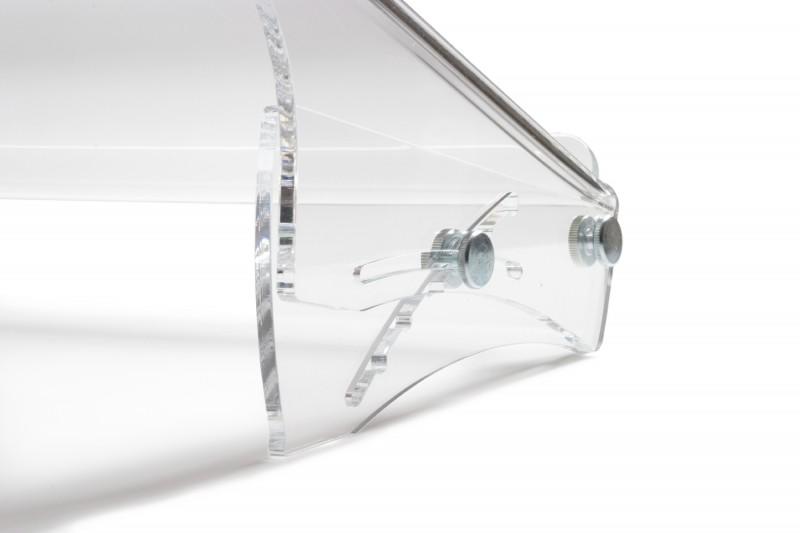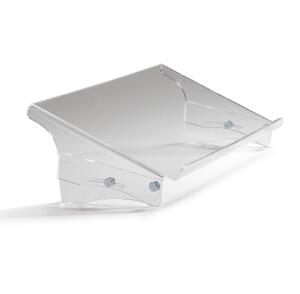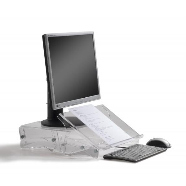 This transparent document holder is placed between screen and keyboard, and is designed for use with compact keyboards. This prevents undue head and neck movements.